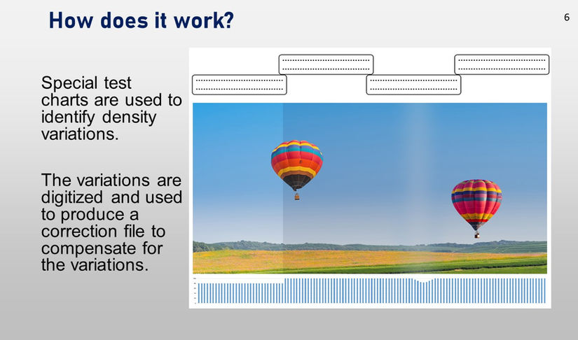 Meteor's cross-web density correction based on Global Graphics' PrintFlat technology offers an effective way to address printhead and stitch zone banding.